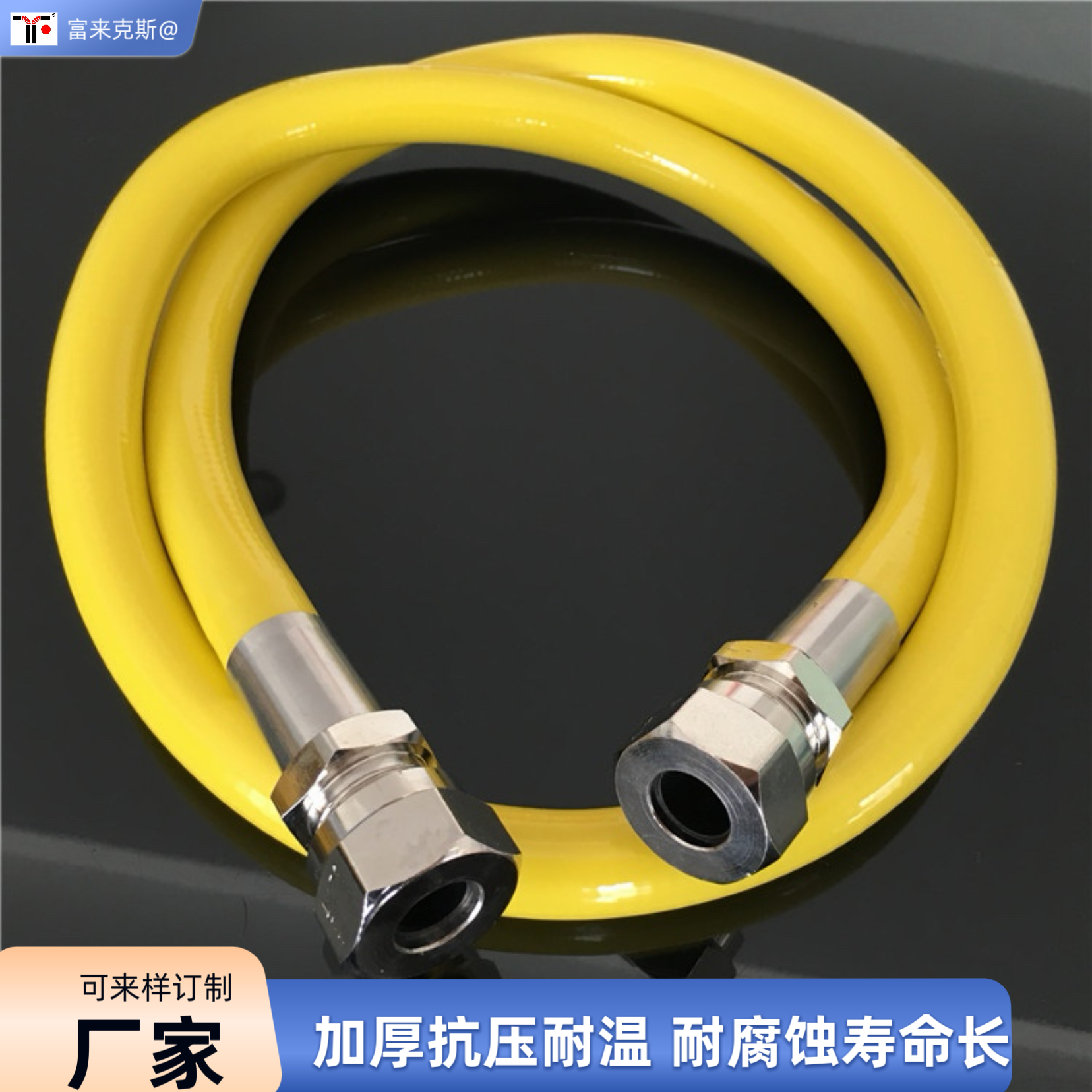 304不锈钢天然气管产品介绍,品牌:富来克斯;接头:铜镀铬/不锈钢镀镍;外皮材质:PVC阻燃外层;垫片材质:丁晴橡胶;管体材质:304不锈钢;连接形式:螺口+螺口、螺口+插口、插口+插口;产品用途:天然气管道/液化气管道/热水器/燃气连接管/燃气灶/燃气改造工程,也可根据长度自行裁剪安装接头。
